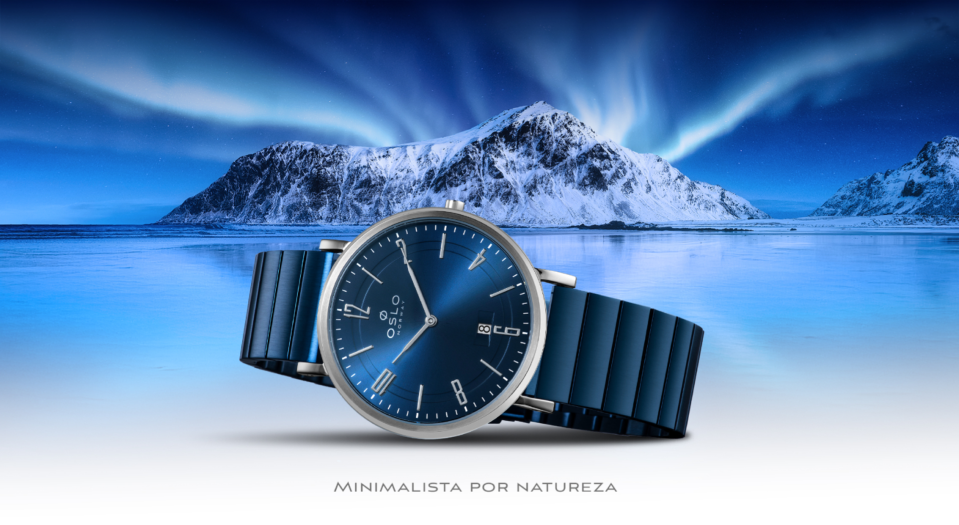 Foi nesse famoso e conhecido “estilo escandinavo”, combinado com a composição das cores refletidas nas paisagens naturais da Noruega – seus mares, lagos, bosques, montanhas e no fenômeno natural aurora boreal – que buscamos inspiração para criar a nova coleção Oslo. Uma linha de relógios que se destaca por seus traços mínimos, simples e elegantes.
